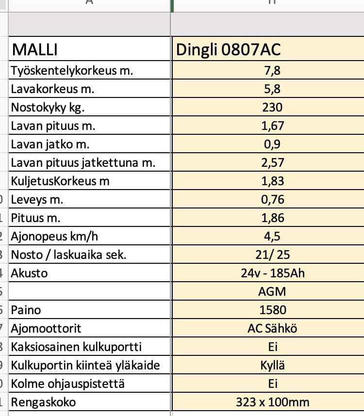Työskentelykorkeus 7.6m